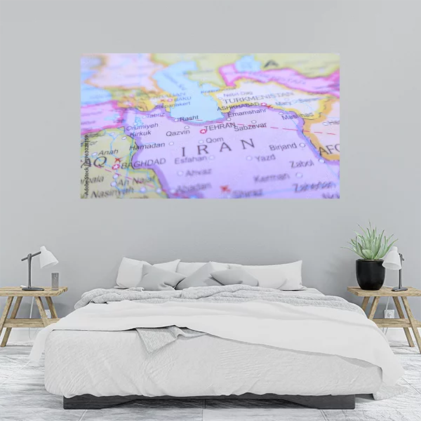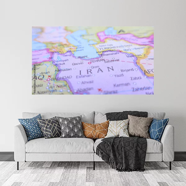 Obrazek przedstawia kolorową mapę Iranu oraz pobliskich krajów, która może stać się doskonałą dekoracją ścienną do wnętrz. Dedykowany do salonu lub sypialni, będzie nie tylko atrakcyjnym elementem wizualnym, ale również interesującym punktem do rozmów. Drukowany na płótnie bawełnianym, dostępny także na innych materiałach takich jak szkło plexi, płyta PCV, płótno poliestrowe czy korek. Możliwość wyboru wymiarów pozwala na idealne dopasowanie do przestrzeni, którą chcemy ozdobić. Opcjonalnie w ramie drewnianej w kolorze czarnym lub naturalnym, obrazek nabiera dodatkowego eleganckiego charakteru. Możliwość druku na płycie dibond zapewnia nowoczesny i trwały wygląd, który wkomponuje się w różnorodne style wnętrzarskie. Taka dekoracja ścienna to nie tylko mapa, ale także unikatowy akcent designu, który podkreśli indywidualny styl każdego pomieszczenia.
