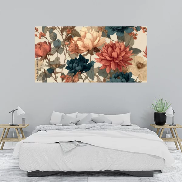 Obrazek przedstawia piękną kompozycję kwiatową, idealną do wnętrz zarówno w salonie, jak i sypialni. Utrzymany w delikatnych, harmonijnych barwach, dodaje elegancji i klasy każdemu pomieszczeniu. Motyw kwiatowy jest subtelny, a jednocześnie wyrazisty, co sprawia, że przyciąga wzrok i nadaje charakteru każdemu wnętrzu.