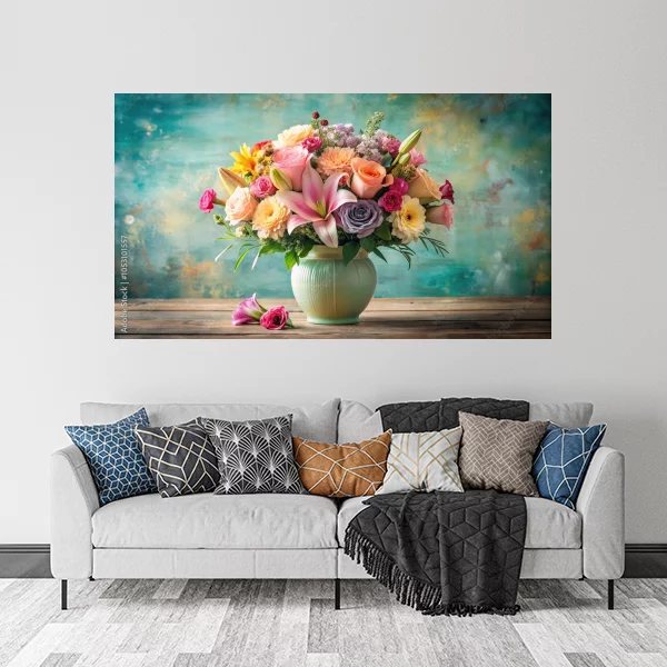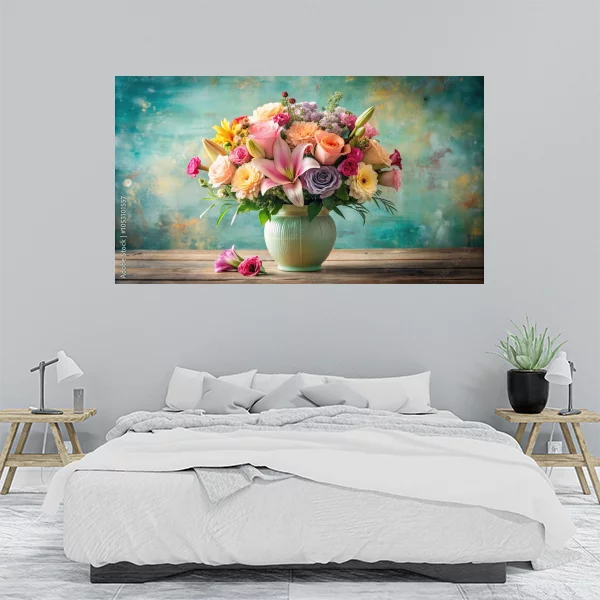 Przedstawiony obrazek jest idealnym przykładem sztuki, która doskonale wpisze się w wystrój zarówno nowoczesnych, jak i klasycznych wnętrz. Wyjątkowa kompozycja kwiatowa, przedstawiona na subtelnie kontrastującym tle, wniesie świeżość i elegancję do każdego salonu. Obraz drukowany na płótnie na ścianę może stanowić centralny element dekoracyjny, wokół którego zbudujesz spójny i harmonijny wystrój.