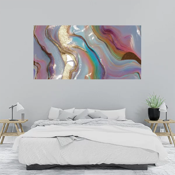 Ten obraz drukowany na płótnie idealnie nadaje się do wnętrz, dodając im elegancji i nowoczesnego stylu. Jego abstrakcyjne wzory z intensywnymi odcieniami fioletu, niebieskiego i złota tworzą wrażenie płynnego ruchu i dynamiki. Obraz doskonale sprawdzi się zarówno w salonie, jak i w sypialni, wprowadzając do pomieszczeń nutę luksusu.