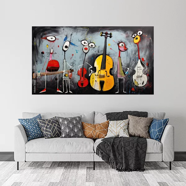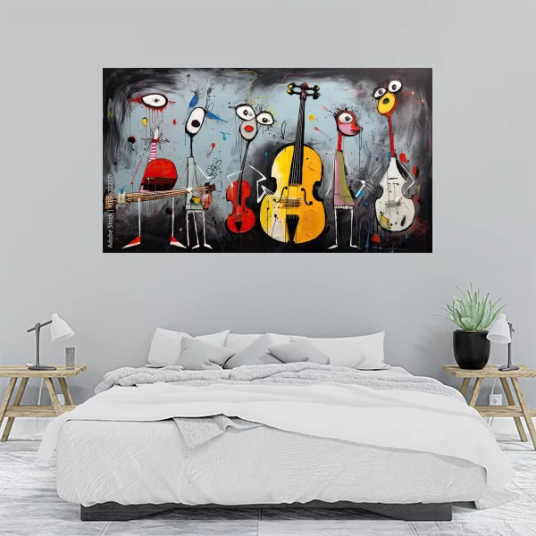 Obrazek to wyjątkowe dzieło sztuki, które idealnie nadaje się jako dekoracja do wnętrz, zarówno w salonie, jak i w sypialni. Dzięki żywej kolorystyce i abstrakcyjnym postaciom, przyciąga wzrok i dodaje przestrzeni charakteru. Możliwość druku na wymiar pozwala na dostosowanie do każdego pomieszczenia, niezależnie od jego wielkości.