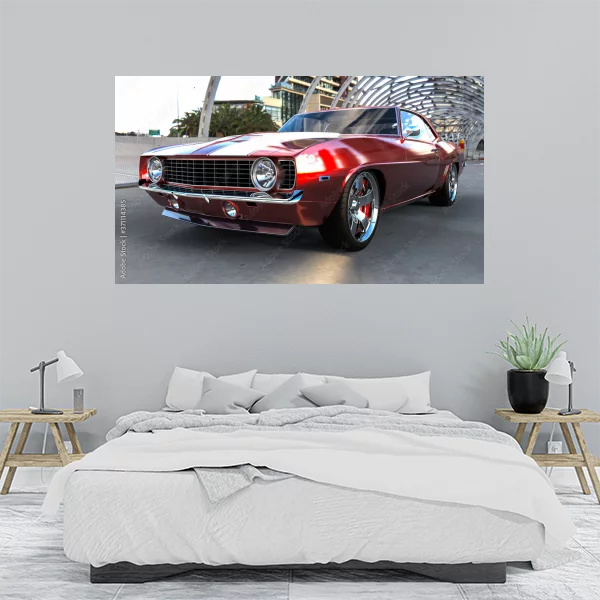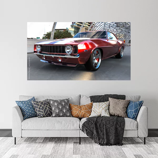 Ten obrazek przedstawia klasyczny sportowy samochód osadzony na tle futurystycznej konstrukcji architektonicznej. Idealny dla miłośników motoryzacji, jako drukowany na płótnie dekoracyjny element do wnętrz. Doskonale sprawdzi się zarówno w salonie, gdzie doda dynamizmu i elegancji, jak i w sypialni, nadając jej nieco nowoczesnego charakteru. Obraz ten można zamówić na wymiar, dostosowując go do indywidualnych potrzeb przestrzeni.