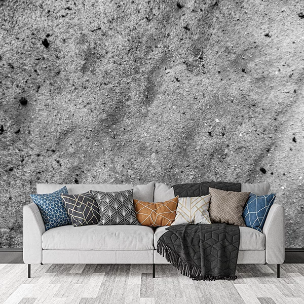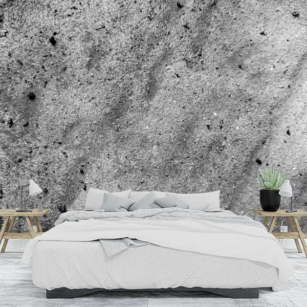 Fototapeta przedstawia teksturę, która naśladuje powierzchnię naturalnego kamienia lub betonu w odcieniach szarości. Widać drobne ziarenka i niewielkie nierówności, nadające obrazowi surowy i minimalistyczny charakter. Czarno-biała kolorystyka dodaje wnętrzu industrialnego klimatu, a delikatne cienie tworzą iluzję głębi i struktury. Tego typu fototapeta doskonale pasuje do nowoczesnych, loftowych przestrzeni, podkreślając ich wyrazisty styl.