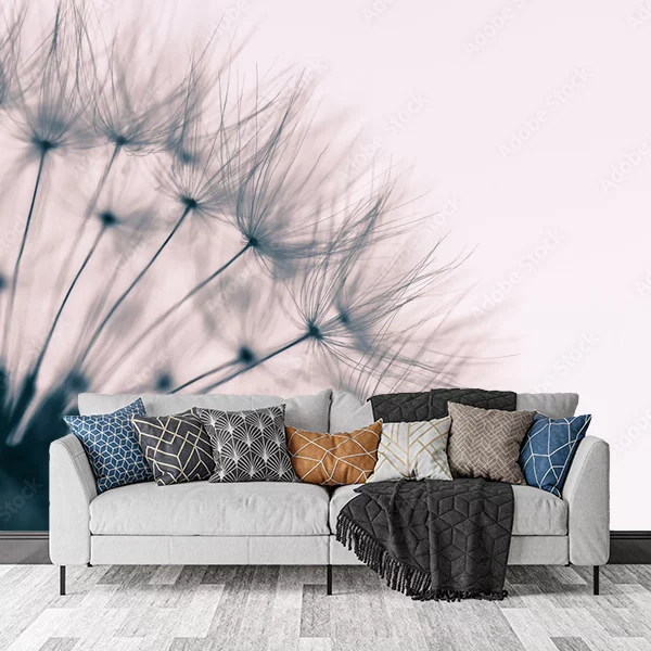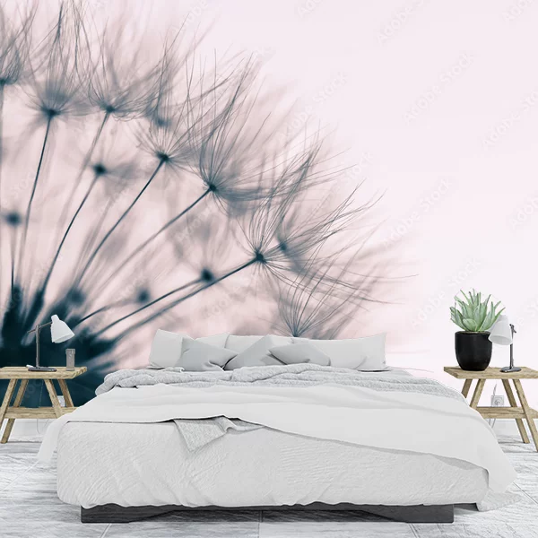 Na obrazie widzimy zbliżenie na dmuchawiec, czyli kwiat mniszka lekarskiego, w fazie nasiennej. Dmuchawiec jest przedstawiony w delikatnych odcieniach szarości, co nadaje obrazowi subtelny, niemal eteryczny wygląd. Półprzezroczyste parasolki nasion są widoczne w szczegółach, tworząc misterną, koronkową strukturę. Tło jest jednolite i jasne, co sprawia, że dmuchawiec staje się głównym, wyraziście kontrastującym elementem kompozycji. Tego rodzaju obraz doskonale sprawdzi się jako minimalistyczna fototapeta na ścianę, wprowadzając do wnętrza naturę i lekkość. Idealny do salonu, sypialni czy biura, wprowadzając element spokoju i elegancji.