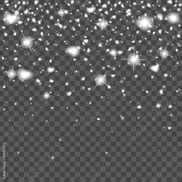 Fototapeta Abstract creative christmas falling snow isolated on background. Vector illustration clipart art for Xmas holiday decoration. Concept idea design element. Realistic snowflake. Winter frost effect zostanie wykonana z dbałością o każdy detal, dostępna jest na wysokiej jakości materiałach, takich jak lateks 130g/m2, flizelina 265g/m2, flizelina 350g/m2, winyl 350g/m2, beton 420g/m2, samoprzylepna i wiele innych zapewniających doskonałe nasycenie kolorów oraz trwałość. Każdy wzór jest tworzony z dbałością o najdrobniejsze detale, spełniając Twoje oczekiwania. Bryty drukowane są do szerokości 100cm (powyżej - bryty dzielone są na równe części).