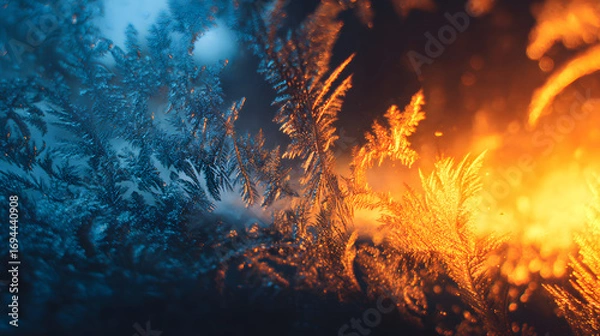 Fototapeta abstract crystallized ice fractals in luminous blue blending with molten orange glow cold versus warmth zostanie wykonana z dbałością o każdy detal, dostępna jest na wysokiej jakości materiałach, takich jak lateks 130g/m2, flizelina 265g/m2, flizelina 350g/m2, winyl 350g/m2, beton 420g/m2, samoprzylepna i wiele innych zapewniających doskonałe nasycenie kolorów oraz trwałość. Każdy wzór jest tworzony z dbałością o najdrobniejsze detale, spełniając Twoje oczekiwania. Bryty drukowane są do szerokości 100cm (powyżej - bryty dzielone są na równe części).