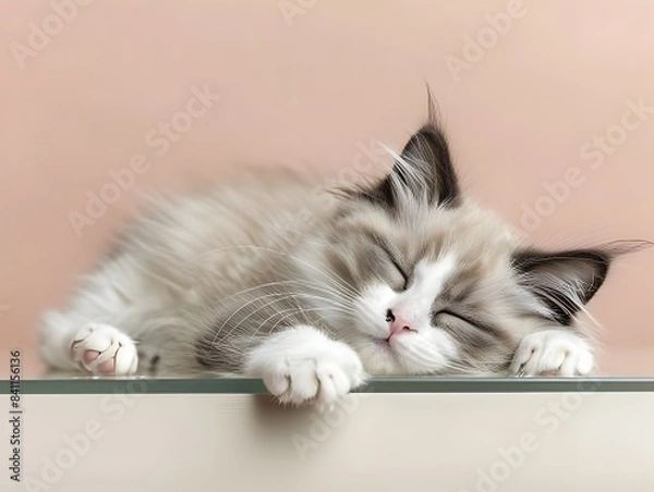 Fototapeta Adorable Ragdoll Kitten Napping on a Peaceful Pastel Background zostanie wykonana z dbałością o każdy detal, dostępna jest na wysokiej jakości materiałach, takich jak lateks 130g/m2, flizelina 265g/m2, flizelina 350g/m2, winyl 350g/m2, beton 420g/m2, samoprzylepna i wiele innych zapewniających doskonałe nasycenie kolorów oraz trwałość. Każdy wzór jest tworzony z dbałością o najdrobniejsze detale, spełniając Twoje oczekiwania. Bryty drukowane są do szerokości 100cm (powyżej - bryty dzielone są na równe części).