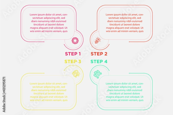 Fototapeta Business process. Gradient step by step. Vector business template for presentation. Business process zostanie wykonana z dbałością o każdy detal, dostępna jest na wysokiej jakości materiałach, takich jak lateks 130g/m2, flizelina 265g/m2, winyl 290g/m2, beton 450g/m2, samoprzylepna, dodatkowo laminowana i wiele innych zapewniających doskonałe nasycenie kolorów oraz trwałość. Każdy wzór jest tworzony z dbałością o najdrobniejsze detale, spełniając Twoje oczekiwania. Bryty drukowane są do szerokości 100cm (powyżej - bryty dzielone są na równe części).