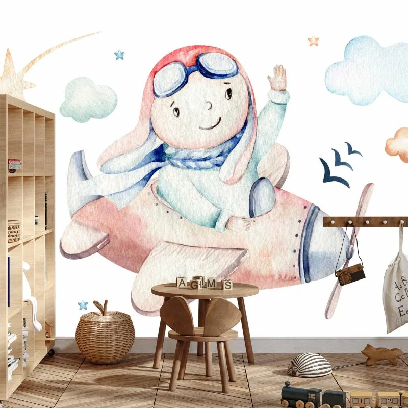 Fototapeta Chłopiec W Samolocie charakteryzuje się ciekawym motywem i jest uniwersalnym wyborem. Może sprawdzić się zarówno w pokoju, salonie czy też sypialni.