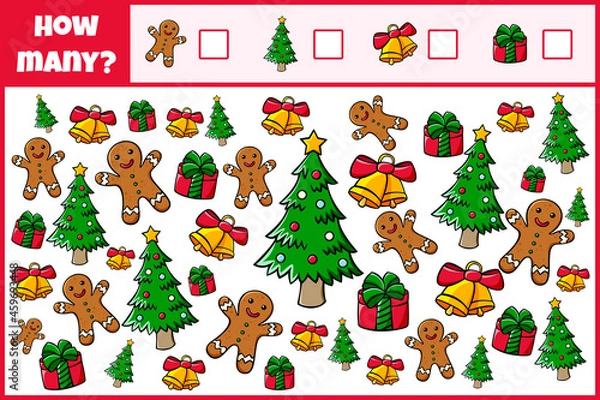 Fototapeta Educational mathematical game. Count the objects. Count how many objects. Counting game for children. zostanie wykonana z dbałością o każdy detal, dostępna jest na wysokiej jakości materiałach, takich jak lateks 130g/m2, flizelina 265g/m2, winyl 290g/m2, beton 450g/m2, samoprzylepna, dodatkowo laminowana i wiele innych zapewniających doskonałe nasycenie kolorów oraz trwałość. Każdy wzór jest tworzony z dbałością o najdrobniejsze detale, spełniając Twoje oczekiwania. Bryty drukowane są do szerokości 100cm (powyżej - bryty dzielone są na równe części).