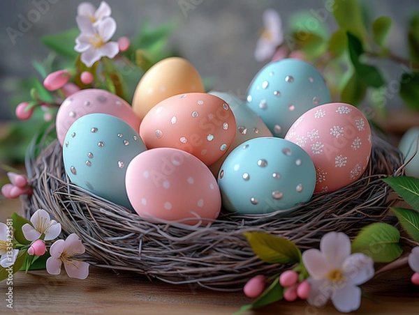 Fototapeta Elegant Easter Nest with Decorated Eggs