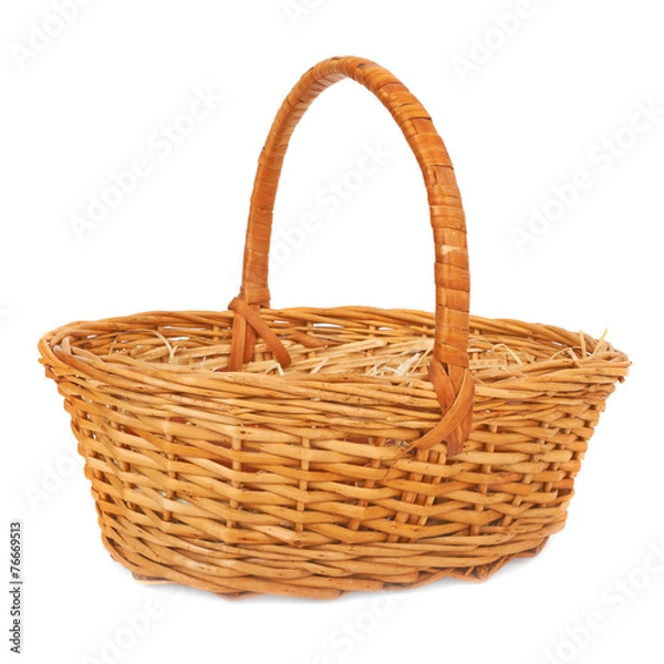 Fototapeta Empty wicker basket. Isolated on white zostanie wykonana z dbałością o każdy detal, dostępna jest na wysokiej jakości materiałach, takich jak lateks 130g/m2, flizelina 265g/m2, winyl 290g/m2, beton 450g/m2, samoprzylepna, dodatkowo laminowana i wiele innych zapewniających doskonałe nasycenie kolorów oraz trwałość. Każdy wzór jest tworzony z dbałością o najdrobniejsze detale, spełniając Twoje oczekiwania. Bryty drukowane są do szerokości 100cm (powyżej - bryty dzielone są na równe części).