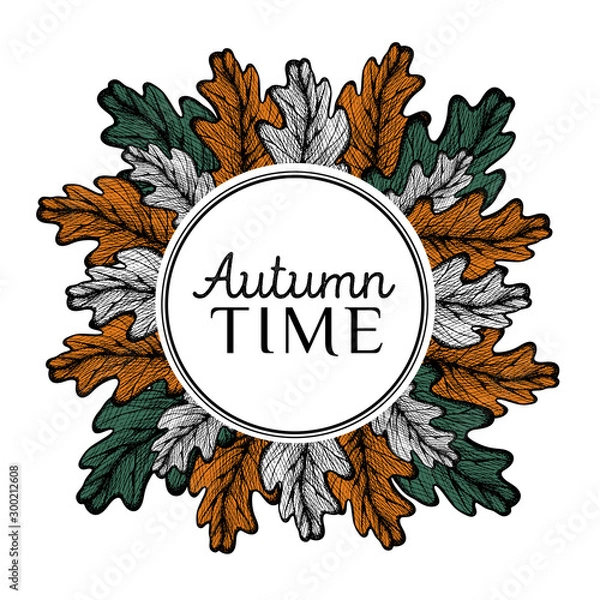 Fototapeta Hand drawn wreath with leaves. Autumn design. Red forest berries. For design textiles, fabric, packaging, paper, surface decoration, background. zostanie wykonana z dbałością o każdy detal, dostępna jest na wysokiej jakości materiałach, takich jak lateks 130g/m2, flizelina 265g/m2, winyl 290g/m2, beton 450g/m2, samoprzylepna, dodatkowo laminowana i wiele innych zapewniających doskonałe nasycenie kolorów oraz trwałość. Każdy wzór jest tworzony z dbałością o najdrobniejsze detale, spełniając Twoje oczekiwania. Bryty drukowane są do szerokości 100cm (powyżej - bryty dzielone są na równe części).