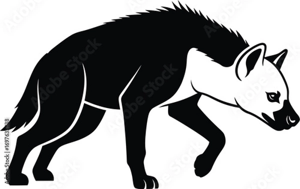 Fototapeta Hyena silhouette, a predator with a distinctive appearance and scavenging behavior zostanie wykonana z dbałością o każdy detal, dostępna jest na wysokiej jakości materiałach, takich jak lateks 130g/m2, flizelina 265g/m2, flizelina 350g/m2, winyl 350g/m2, beton 420g/m2, samoprzylepna i wiele innych zapewniających doskonałe nasycenie kolorów oraz trwałość. Każdy wzór jest tworzony z dbałością o najdrobniejsze detale, spełniając Twoje oczekiwania. Bryty drukowane są do szerokości 100cm (powyżej - bryty dzielone są na równe części).