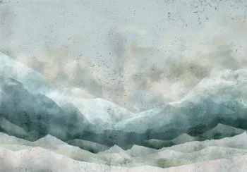 Fototapeta przedstawiająca subtelny, akwarelowy krajobraz górski w delikatnych szarościach i zielonych tonacjach. Idealna dla miłośników przyrody, wprowadzając atmosferę spokoju i przestrzeni do salonu, sypialni czy gabinetu. Minimalistyczna i elegancka, doskonale komponuje się z różnymi stylami wnętrzarskimi.