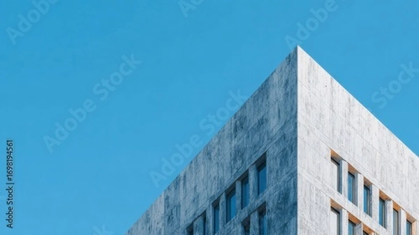 Fototapeta Modern Architectural Building Against Clear Blue Sky. Minimalist Design And Urban Aesthetics zostanie wykonana z dbałością o każdy detal, dostępna jest na wysokiej jakości materiałach, takich jak lateks 130g/m2, flizelina 265g/m2, flizelina 350g/m2, winyl 350g/m2, beton 420g/m2, samoprzylepna i wiele innych zapewniających doskonałe nasycenie kolorów oraz trwałość. Każdy wzór jest tworzony z dbałością o najdrobniejsze detale, spełniając Twoje oczekiwania. Bryty drukowane są do szerokości 100cm (powyżej - bryty dzielone są na równe części).
