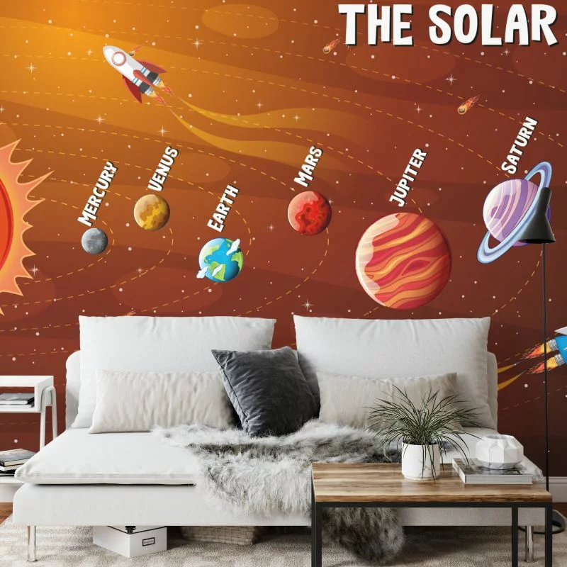 Szukasz niedrogiego i prostego sposobu, by odświeżyć wygląd wnętrza i zabezpieczyć swoje ściany? Dobrym pomysłem może być wysokiej jakości fototapeta z ciekawym motywem. Fototapeta Pomarańczowy Układ Słoneczny doskonale się sprawdzi w tej roli.