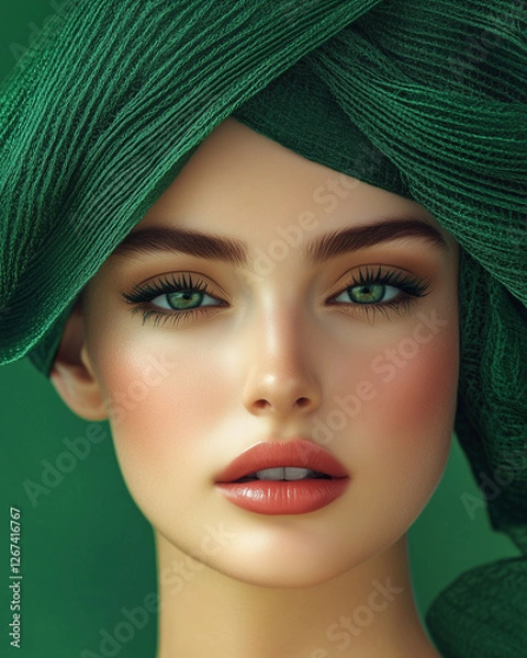 Fototapeta Portrait of a beautiful model on emerald background zostanie wykonana z dbałością o każdy detal, dostępna jest na wysokiej jakości materiałach, takich jak lateks 130g/m2, flizelina 265g/m2, flizelina 350g/m2, winyl 350g/m2, beton 420g/m2, samoprzylepna i wiele innych zapewniających doskonałe nasycenie kolorów oraz trwałość. Każdy wzór jest tworzony z dbałością o najdrobniejsze detale, spełniając Twoje oczekiwania. Bryty drukowane są do szerokości 100cm (powyżej - bryty dzielone są na równe części).
