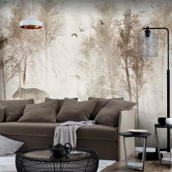Szukasz niedrogiego i prostego sposobu, by odświeżyć wygląd wnętrza i zabezpieczyć swoje ściany? Dobrym pomysłem może być wysokiej jakości fototapeta z ciekawym motywem. Fototapeta - Pośród drzew - pejzaż w szarych tonach we mgle na polanie z ptakami doskonale się sprawdzi w tej roli.