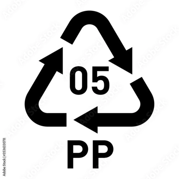 Fototapeta PP 05 recycling code symbol. Plastic recycling vector polypropylene sign. zostanie wykonana z dbałością o każdy detal, dostępna jest na wysokiej jakości materiałach, takich jak lateks 130g/m2, flizelina 265g/m2, winyl 290g/m2, beton 450g/m2, samoprzylepna, dodatkowo laminowana i wiele innych zapewniających doskonałe nasycenie kolorów oraz trwałość. Każdy wzór jest tworzony z dbałością o najdrobniejsze detale, spełniając Twoje oczekiwania. Bryty drukowane są do szerokości 100cm (powyżej - bryty dzielone są na równe części).