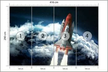 Wybór produktu Fototapeta Prom Kosmiczny Opuszczający Ziemię może mieć nie tylko znaczenie estetyczne, ale i praktyczne. Została ona w stu procentach wykonana z flizeliny, która dobrze przykryje drobne niedoskonałości ściany. W przypadku zastosowania farby lub zwykłej tapety byłoby to niemożliwe.