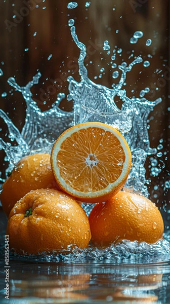 Fototapeta Refreshing Splash of Fresh Oranges in Water Explosion Perfect for Juice Advertisement and Healthy Lifestyle Promotions zostanie wykonana z dbałością o każdy detal, dostępna jest na wysokiej jakości materiałach, takich jak lateks 130g/m2, flizelina 265g/m2, winyl 290g/m2, beton 450g/m2, samoprzylepna, dodatkowo laminowana i wiele innych zapewniających doskonałe nasycenie kolorów oraz trwałość. Każdy wzór jest tworzony z dbałością o najdrobniejsze detale, spełniając Twoje oczekiwania. Bryty drukowane są do szerokości 100cm (powyżej - bryty dzielone są na równe części).