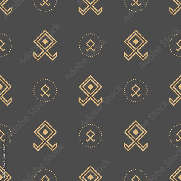 Fototapeta Seamless pattern of ancient zostanie wykonana z dbałością o każdy detal, dostępna jest na wysokiej jakości materiałach, takich jak lateks 130g/m2, flizelina 265g/m2, winyl 290g/m2, beton 450g/m2, samoprzylepna, dodatkowo laminowana i wiele innych zapewniających doskonałe nasycenie kolorów oraz trwałość. Każdy wzór jest tworzony z dbałością o najdrobniejsze detale, spełniając Twoje oczekiwania. Bryty drukowane są do szerokości 100cm (powyżej - bryty dzielone są na równe części).