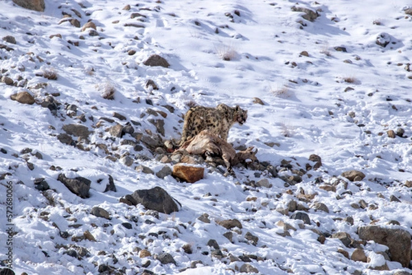 Fototapeta snow leopard after hunt zostanie wykonana z dbałością o każdy detal, dostępna jest na wysokiej jakości materiałach, takich jak lateks 130g/m2, flizelina 265g/m2, winyl 290g/m2, beton 450g/m2, samoprzylepna, dodatkowo laminowana i wiele innych zapewniających doskonałe nasycenie kolorów oraz trwałość. Każdy wzór jest tworzony z dbałością o najdrobniejsze detale, spełniając Twoje oczekiwania. Bryty drukowane są do szerokości 100cm (powyżej - bryty dzielone są na równe części).