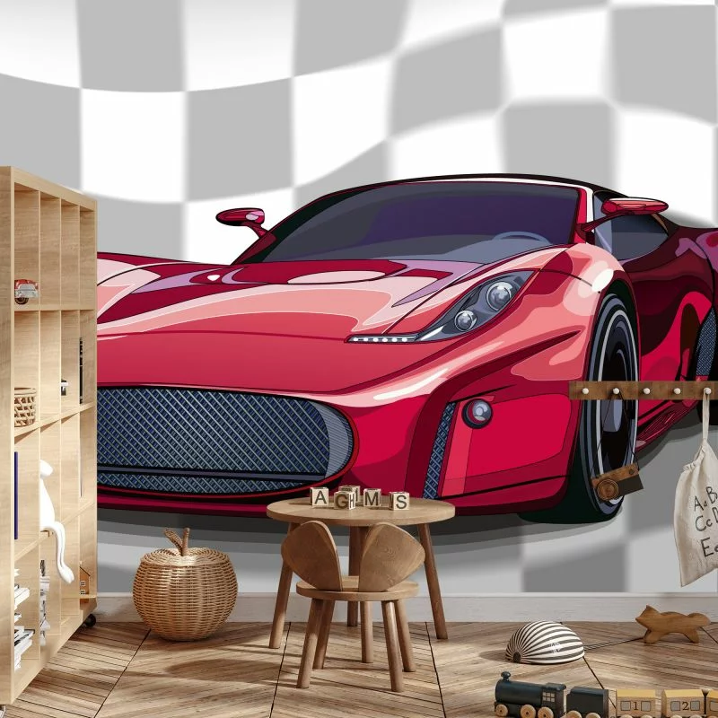 Fototapeta Sportowy Czerwony Samochód charakteryzuje się ciekawym motywem i jest uniwersalnym wyborem. Może sprawdzić się zarówno w pokoju, salonie czy też sypialni.