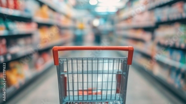 Fototapeta Supermarket blured aisle with empty red shopping cart. zostanie wykonana z dbałością o każdy detal, dostępna jest na wysokiej jakości materiałach, takich jak lateks 130g/m2, flizelina 265g/m2, flizelina 350g/m2, winyl 350g/m2, beton 420g/m2, samoprzylepna i wiele innych zapewniających doskonałe nasycenie kolorów oraz trwałość. Każdy wzór jest tworzony z dbałością o najdrobniejsze detale, spełniając Twoje oczekiwania. Bryty drukowane są do szerokości 100cm (powyżej - bryty dzielone są na równe części).