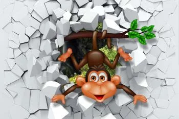 Fototapeta Szczęśliwa Małpka charakteryzuje się ciekawym motywem i jest uniwersalnym wyborem. Może sprawdzić się zarówno w pokoju, salonie czy też sypialni.