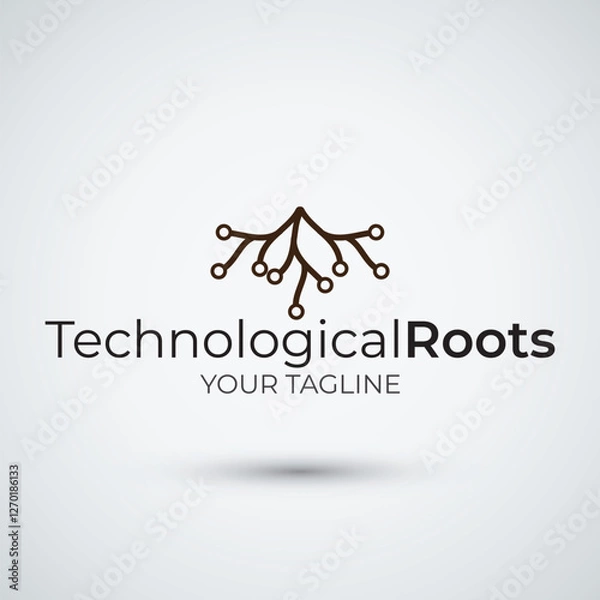 Fototapeta Technological Roots Logo Design Flat Icon Template zostanie wykonana z dbałością o każdy detal, dostępna jest na wysokiej jakości materiałach, takich jak lateks 130g/m2, flizelina 265g/m2, winyl 350g/m2, beton 450g/m2, samoprzylepna, dodatkowo laminowana i wiele innych zapewniających doskonałe nasycenie kolorów oraz trwałość. Każdy wzór jest tworzony z dbałością o najdrobniejsze detale, spełniając Twoje oczekiwania. Bryty drukowane są do szerokości 100cm (powyżej - bryty dzielone są na równe części).
