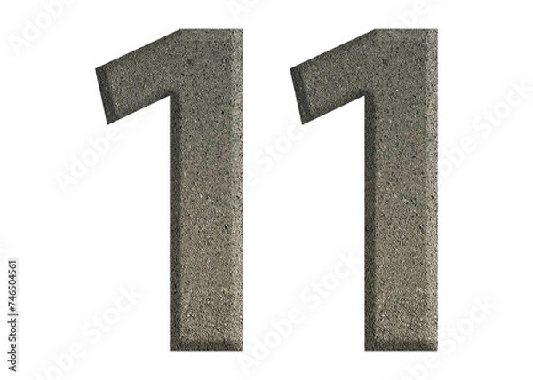 Fototapeta The shape of the number 11 is made of cement isolated on transparent background. Suitable for birthday, anniversary and Memorial Day templates zostanie wykonana z dbałością o każdy detal, dostępna jest na wysokiej jakości materiałach, takich jak lateks 130g/m2, flizelina 265g/m2, flizelina 350g/m2, winyl 350g/m2, beton 420g/m2, samoprzylepna i wiele innych zapewniających doskonałe nasycenie kolorów oraz trwałość. Każdy wzór jest tworzony z dbałością o najdrobniejsze detale, spełniając Twoje oczekiwania. Bryty drukowane są do szerokości 100cm (powyżej - bryty dzielone są na równe części).