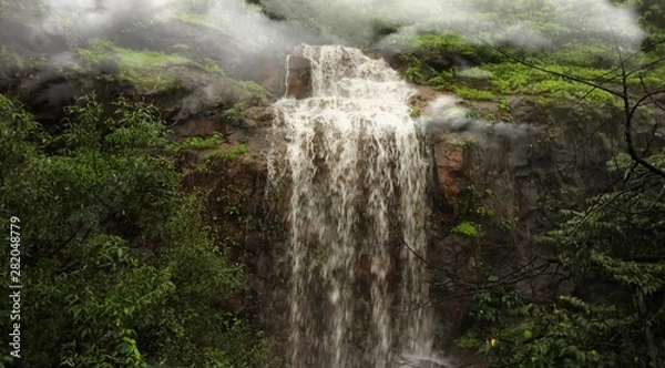 Fototapeta Waterfall mountain with rain clouds view zostanie wykonana z dbałością o każdy detal, dostępna jest na wysokiej jakości materiałach, takich jak lateks 130g/m2, flizelina 265g/m2, winyl 290g/m2, beton 450g/m2, samoprzylepna, dodatkowo laminowana i wiele innych zapewniających doskonałe nasycenie kolorów oraz trwałość. Każdy wzór jest tworzony z dbałością o najdrobniejsze detale, spełniając Twoje oczekiwania. Bryty drukowane są do szerokości 100cm (powyżej - bryty dzielone są na równe części).