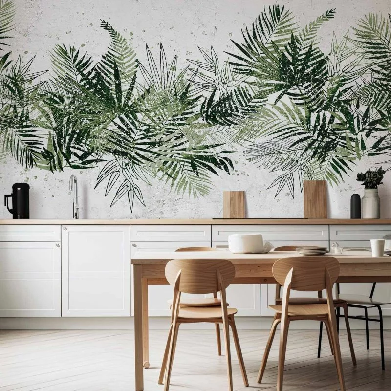 Żeby stworzyć niebanalną aranżację wnętrza, wcale nie trzeba wiele. Wystarczy umieścić na ścianie dobrze dobraną, pasującą charakterem do reszty wystroju fototapetę. Fototapeta taka jak Fototapeta wodoodporna - Dżungla i zielony pióropusz - duże liście tropikalne na białym tle doskonale sprawdzi się w różnych pomieszczeniach w domu: w sypialni, salonie czy kuchni; oraz w biurze. Oryginalny motyw na ścianie przyciąga wzrok i nadaje wnętrzu awangardowego charakteru. Osoba, która zdecyduje się na umieszczenie jej u siebie, będzie postrzegana przez otoczenie jako twórcza i kreatywna, interesująca się najnowszymi trendami w dekoracji wnętrz.