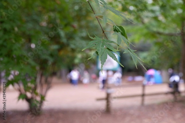 Obraz 清水公園の紅葉と木、落ち葉