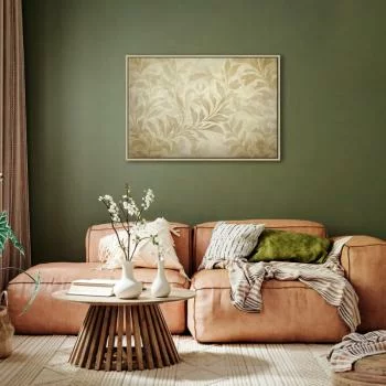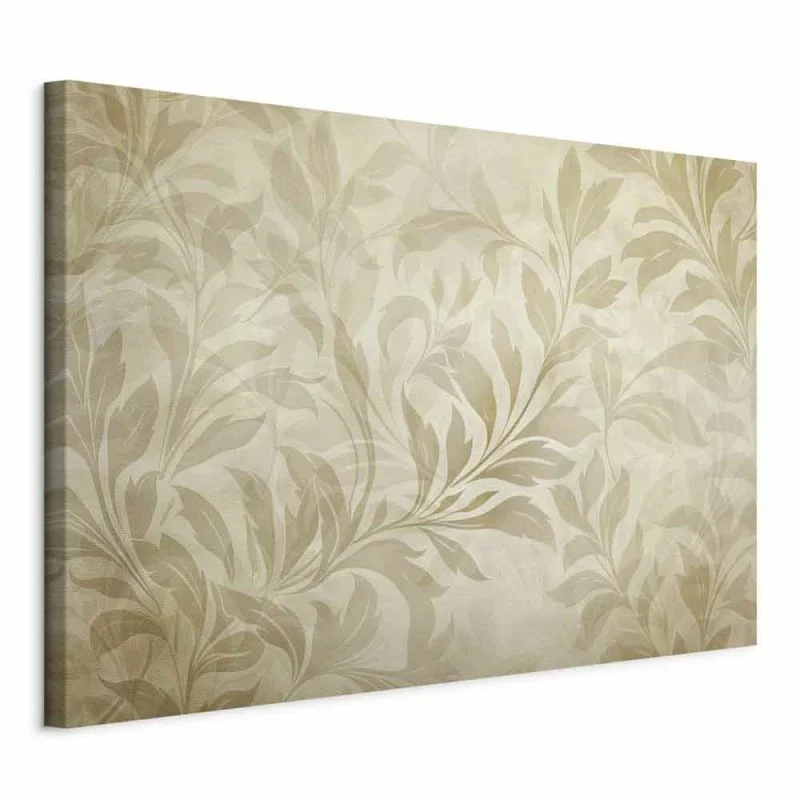 obraz na płótnie "Obraz - Botaniczny motyw z listkami i pnączami w kolorach piaskowych" może z powodzeniem zająć centralne miejsce w pomieszczeniu. Będzie przykuwał uwagę, a jednocześnie idealnie współgrał z pozostałymi elementami wyposażenia. Takie dekoracje ścienne stworzą piękny duet z niewielkim stolikiem kawowym, delikatną toaletką, Twoim ulubionym fotelem czy innym ważnym meblem w pokoju. Wykorzystasz je tak, jak zechcesz, tworząc niepowtarzalną aranżację. Oferujemy