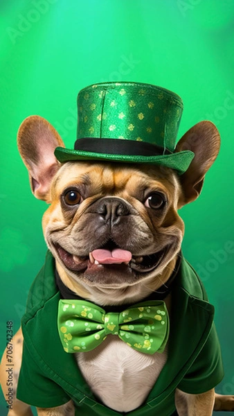 Obraz Fench Bulldog dressed as a leprechaun with green bow tie and top hat zostanie wykonany na wybranym materiale oraz o podanych wymiarach gotowy już do powieszenia na ścianie. Stwórz swój indywidualny i wyjątkowy obraz korzystając z naszego zaawansowanego generatora. Odśwież wnętrze swojego domu dzięki personalizowanym grafikom, dostępnym na różnych materiałach, takich jak płótno poliestrowe, bawełniane, płyta PCV 5mm, szkło optywhite 4mm. Nasz generator pozwala nie tylko dostosować rozmiar i materiał obrazu, ale również modyfikować kolorystykę, nasycenie barw oraz odkrywać podobne obrazy, które pasują do Twojego stylu dzięki funkcji zobacz podobne. Jeżeli chcesz zamówić obraz z własnej grafiki wczytaj zdjęcie.