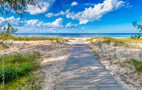Obraz Footpath leading to sand beaches and dunes on a shore of the Baltic Sea in Jurmala – famous tourist resort in Latvia zostanie wykonany na wybranym materiale oraz o podanych wymiarach gotowy już do powieszenia na ścianie. Stwórz swój indywidualny i wyjątkowy obraz korzystając z naszego zaawansowanego generatora. Odśwież wnętrze swojego domu dzięki personalizowanym grafikom, dostępnym na różnych materiałach, takich jak płótno poliestrowe, bawełniane, płyta PCV 5mm, szkło optywhite 4mm. Nasz generator pozwala nie tylko dostosować rozmiar i materiał obrazu, ale również modyfikować kolorystykę, nasycenie barw oraz odkrywać podobne obrazy, które pasują do Twojego stylu dzięki funkcji zobacz podobne. Jeżeli chcesz zamówić obraz z własnej grafiki wczytaj zdjęcie.