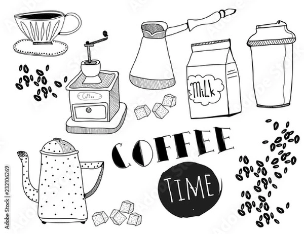 Obraz Hand drawn coffee elements. Graphic vector set zostanie wykonany na wybranym materiale oraz o podanych wymiarach gotowy już do powieszenia na ścianie. Stwórz swój indywidualny i wyjątkowy obraz korzystając z naszego zaawansowanego generatora. Odśwież wnętrze swojego domu dzięki personalizowanym grafikom, dostępnym na różnych materiałach, takich jak płótno poliestrowe, bawełniane, płyta PCV 5mm, szkło optywhite 4mm. Nasz generator pozwala nie tylko dostosować rozmiar i materiał obrazu, ale również modyfikować kolorystykę, nasycenie barw oraz odkrywać podobne obrazy, które pasują do Twojego stylu dzięki funkcji zobacz podobne. Jeżeli chcesz zamówić obraz z własnej grafiki wczytaj zdjęcie.