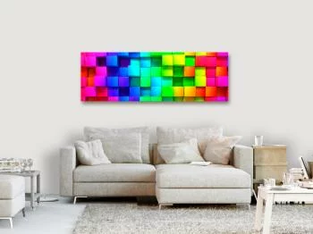 Obraz - Kolorowe sześciany (1-częściowy) wąski w doskonały sposób urozmaici każde wnętrze, stanowiąc praktyczny i niezwykle efektowny dodatek aranżacyjny. Proponowany obraz jest wysokiej jakości, który doskonale odwzorowuje kolory oraz posiada głęboką paletę barw.