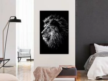 obraz na płótnie "Obraz - Niebieskooki lew (1-częściowy) pionowy" może z powodzeniem zająć centralne miejsce w pomieszczeniu. Będzie przykuwał uwagę, a jednocześnie idealnie współgrał z pozostałymi elementami wyposażenia. Takie dekoracje ścienne stworzą piękny duet z niewielkim stolikiem kawowym, delikatną toaletką, Twoim ulubionym fotelem czy innym ważnym meblem w pokoju. Wykorzystasz je tak, jak zechcesz, tworząc niepowtarzalną aranżację. Oferujemy