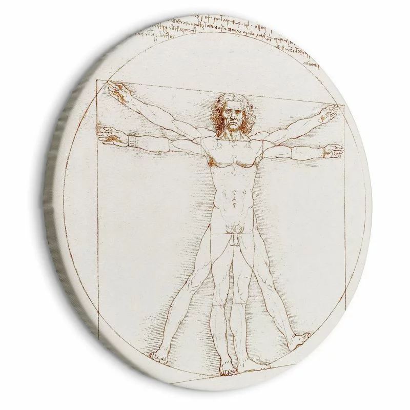 Okrągły obraz "Obraz okrągły - Leonardo da Vinci – Człowiek witruwiański"? Czemu nie! Nietuzinkowy i wyróżniający się na tle innych produktów na rynku obraz okrągły to idealna propozycja dla fanów najnowszych trendów. Łagodne, obłe kształty pojawiają się w naszych wnętrzach coraz częściej, czy to w linii mebli lub detalach architektonicznych, czy to w dekoracjach, a ucieleśnieniem tego trendu są właśnie okrągłe obrazy. Poszukujesz niestandardowej dekoracji, której niecodzienna, obła forma przyciągnie wzrok domowników i gości? Obraz w kształcie koła jest idealnym wyborem! Przy tworzeniu tego produktu połączyliśmy to, co w naszej ofercie najlepsze, czyli unikalne wzory, staranność wykonania oraz innowacyjność w postaci okrągłej ramy, którą zaprojektowali nasi inżynierowie. Dzięki temu nasze popularne i modne wzory uzyskują nową formę i mogą cieszyć jeszcze szersze grono odbiorców.Okrągłe obrazy drukowane na płótnie włoskim