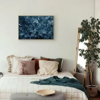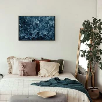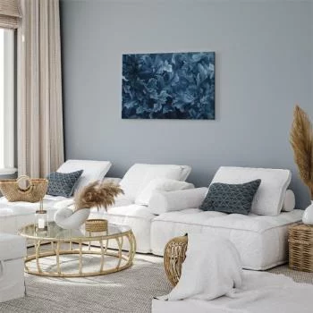 obraz na płótnie "Obraz - Ornamenty abstrakcyjne ciemnoniebieskie wiktoriańskie liście" może z powodzeniem zająć centralne miejsce w pomieszczeniu. Będzie przykuwał uwagę, a jednocześnie idealnie współgrał z pozostałymi elementami wyposażenia. Takie dekoracje ścienne stworzą piękny duet z niewielkim stolikiem kawowym, delikatną toaletką, Twoim ulubionym fotelem czy innym ważnym meblem w pokoju. Wykorzystasz je tak, jak zechcesz, tworząc niepowtarzalną aranżację. Oferujemy