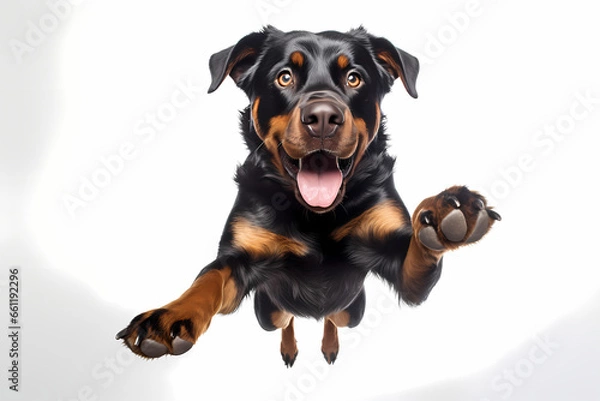 Obraz Rottweiler Jumping on White Background zostanie wykonany na wybranym materiale oraz o podanych wymiarach gotowy już do powieszenia na ścianie. Stwórz swój indywidualny i wyjątkowy obraz korzystając z naszego zaawansowanego generatora. Odśwież wnętrze swojego domu dzięki personalizowanym grafikom, dostępnym na różnych materiałach, takich jak płótno poliestrowe, bawełniane, płyta PCV 5mm, szkło optywhite 4mm. Nasz generator pozwala nie tylko dostosować rozmiar i materiał obrazu, ale również modyfikować kolorystykę, nasycenie barw oraz odkrywać podobne obrazy, które pasują do Twojego stylu dzięki funkcji zobacz podobne. Jeżeli chcesz zamówić obraz z własnej grafiki wczytaj zdjęcie.