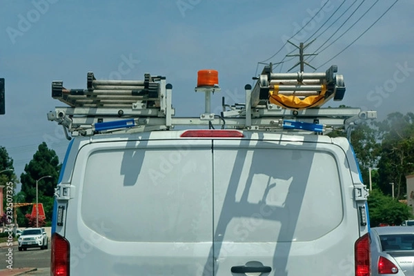 Obraz The back end of a white utility van carrying ladders on its racks. zostanie wykonany na wybranym materiale oraz o podanych wymiarach gotowy już do powieszenia na ścianie. Stwórz swój indywidualny i wyjątkowy obraz korzystając z naszego zaawansowanego generatora. Odśwież wnętrze swojego domu dzięki personalizowanym grafikom, dostępnym na różnych materiałach, takich jak płótno poliestrowe, bawełniane, płyta PCV 5mm, szkło optywhite 4mm. Nasz generator pozwala nie tylko dostosować rozmiar i materiał obrazu, ale również modyfikować kolorystykę, nasycenie barw oraz odkrywać podobne obrazy, które pasują do Twojego stylu dzięki funkcji zobacz podobne. Jeżeli chcesz zamówić obraz z własnej grafiki wczytaj zdjęcie.