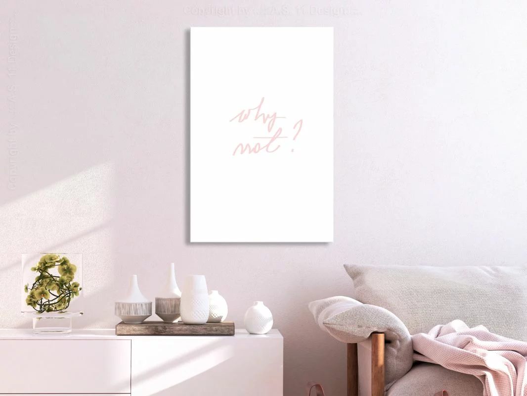 obraz na płótnie "Obraz - Why Not? (1-częściowy) pionowy" może z powodzeniem zająć centralne miejsce w pomieszczeniu. Będzie przykuwał uwagę, a jednocześnie idealnie współgrał z pozostałymi elementami wyposażenia. Takie dekoracje ścienne stworzą piękny duet z niewielkim stolikiem kawowym, delikatną toaletką, Twoim ulubionym fotelem czy innym ważnym meblem w pokoju. Wykorzystasz je tak, jak zechcesz, tworząc niepowtarzalną aranżację. Oferujemy