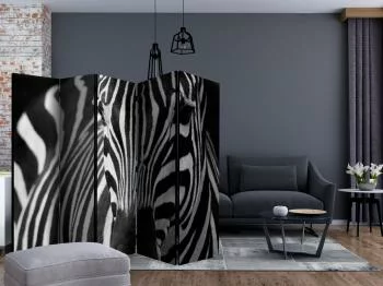 Parawan "Parawan - Biała w czarne paski II" to element wyposażenia dający wiele możliwości. Cechuje go m.in. praktyczność. Jego podstawowym zadaniem jest podzielenie przestrzeni na kilka stref w dyskretny i estetyczny sposób.