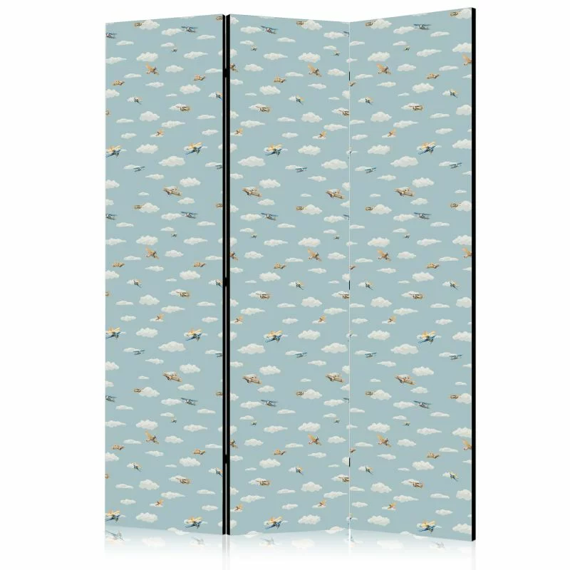 Parawan - Ilustracja - żółto - niebieskie samoloty na tle błękitnego niebafunkcjonalność i elegancja w jednym