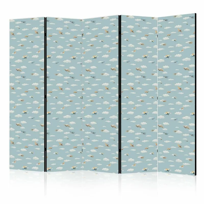 Parawan - Ilustracja - żółto - niebieskie samoloty na tle błękitnego nieba – funkcjonalność i elegancja w jednym